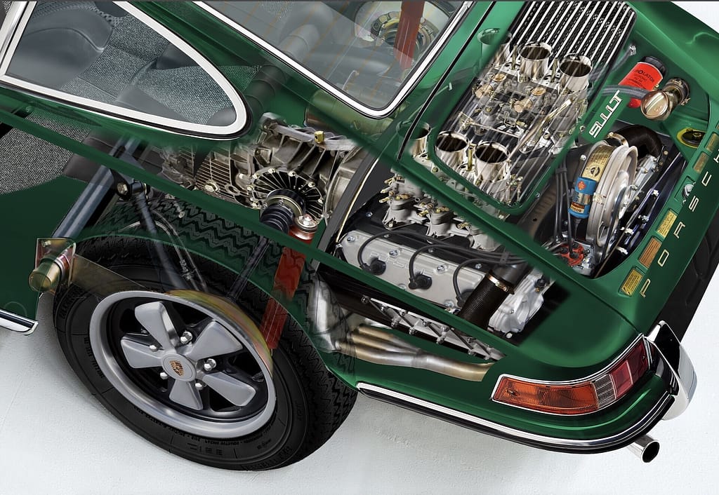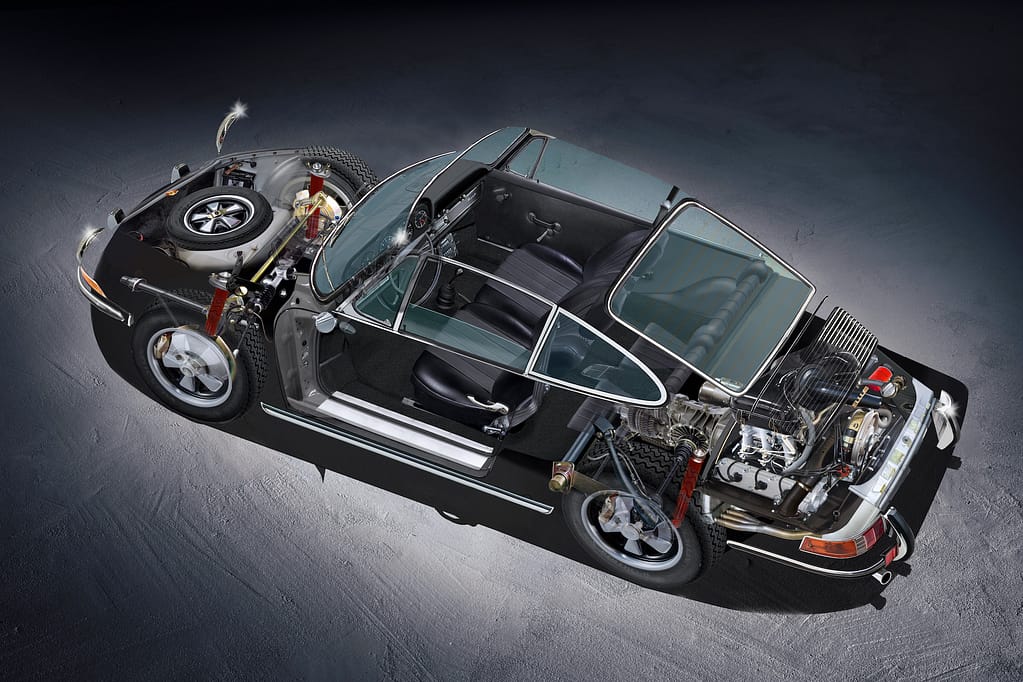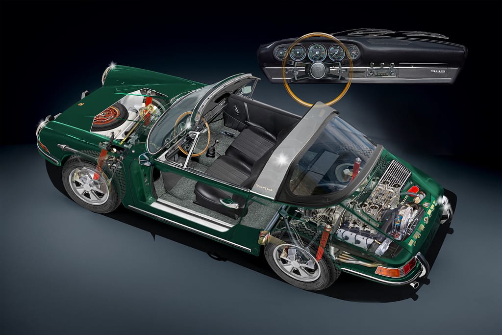 - 5: Cutaway of a real Austrian 911 E — mechanical fuel injection replacing carburettors